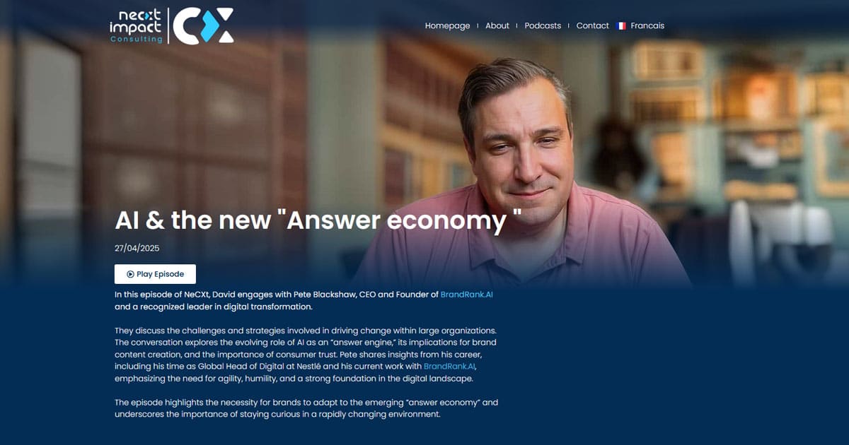 Ensemble, ils explorent le rôle croissant de l’intelligence artificielle comme nouveau « moteur de réponse », ses implications pour les marques en matière de création de contenu, et l’importance croissante de la notion de confiance auprès des consommateurs. Pete partage des enseignements issus de sa carrière — notamment chez Nestlé — et souligne la nécessité, plus que jamais, de rester agile et curieux pour évoluer dans un paysage numérique en constante mutation.